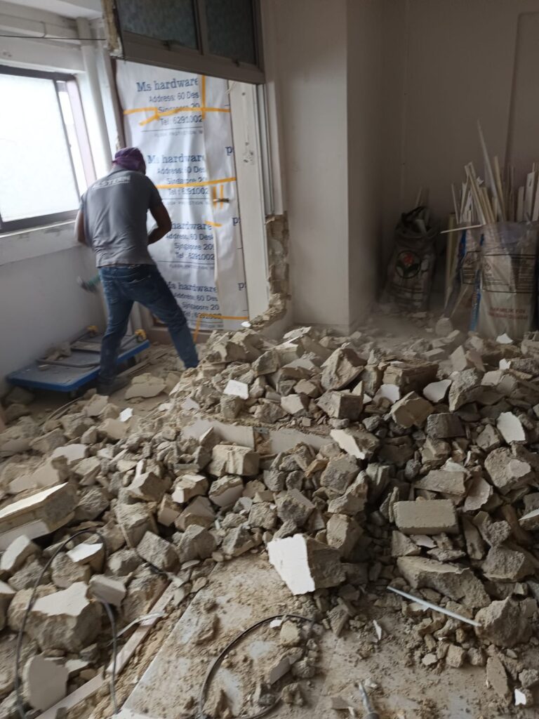 Hacking & Demolition services provide the necessary groundwork for renovation or construction projects, ensuring a safe and efficient removal of existing structures or elements. These services encompass the controlled demolition of walls, floors, ceilings, and other building components, as well as the removal of debris and hazardous materials, all managed by trained professionals. Whether you’re preparing for a full renovation, remodeling a specific area, or clearing space for new construction, our demolition experts provide services that adhere to strict safety standards and regulations. Proper hacking and demolition not only streamline the subsequent construction phases but also minimize risks and ensure a clean and organized worksite. Our team utilizes specialized equipment and techniques to execute demolition projects safely and efficiently, without compromising on thoroughness. From selective dismantling to complete structural demolition, our services cover all your hacking and demolition needs, preparing your space for its next transformation.